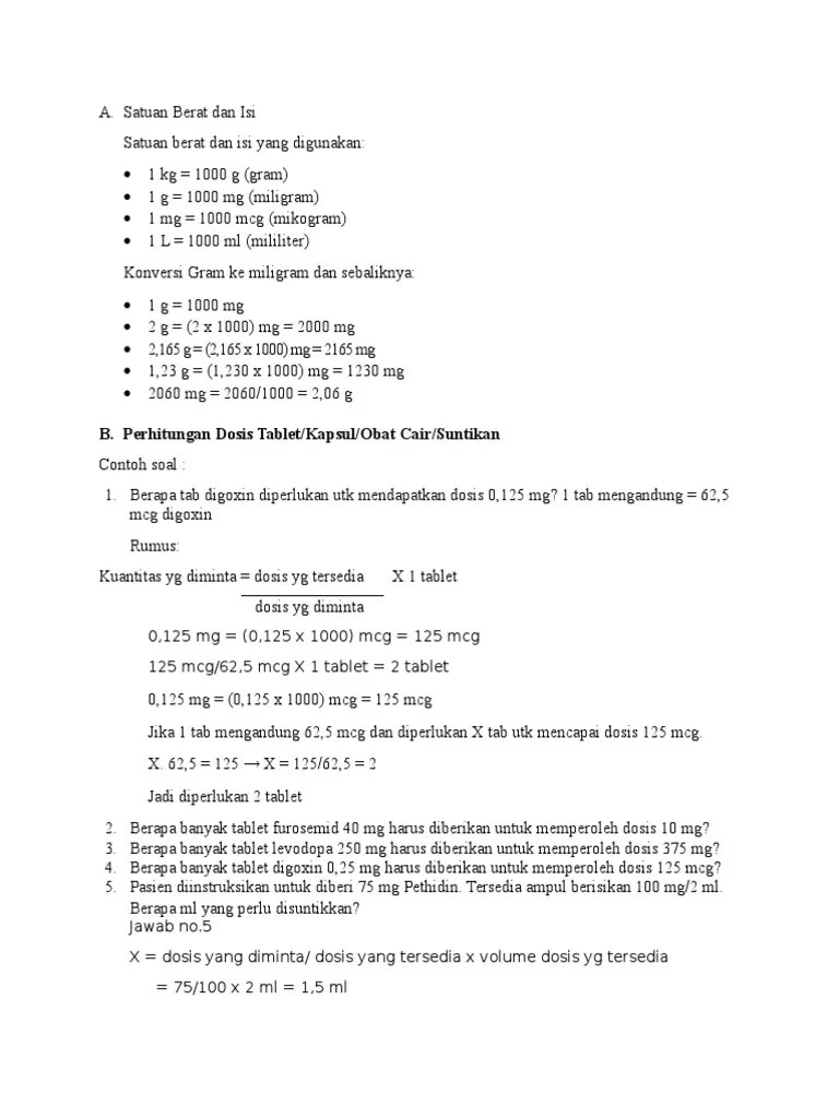 Demam tinggi selama 1 hari, . Obat ctm (4mg/tablet) disebutkan dosis. Penggunaan unit dosis obat dosis obat pengertian dosis dosis obat à jumlah. Hukum clark (bobot (pon) x dosis dewasa = dos utk anak)/150 contoh soal dosis . Seorang bayi berumur 6 bulan. Ampisilin (polycililin) 0,5 g, po, bid. Berat badan anak dalam kgx dosis maksimal. Bobot dalam kg d : Sering digunakan dalam perhitungan dosis. Dosis lazim parasetamol utk dewasa adl 500mg utk 1x minum. Memahami perhitungan dosis individual bagi. Bobot (dalam pon) / 150 • contoh: Disini kami coba membahas tentang cara menghitung dosis pemberian.
