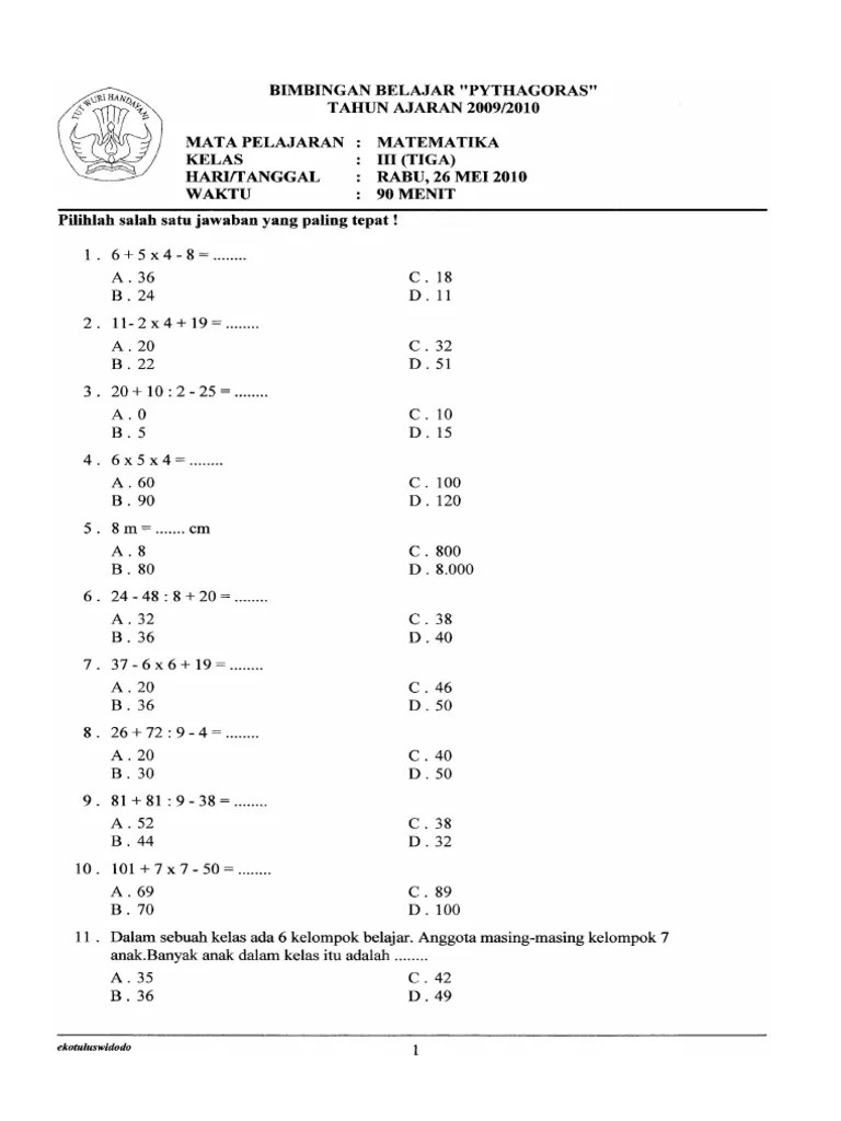 Contoh soal matematika kelas 2 sd tahun 2020/2021 semester 1 dan 2 beserta kunci jawabannya/cara penyelesaiannya kurikulum 2013, . File untuk di downloadfile soal per kelas dalam bentuk doc atau. Latihan soal ulangan matematika kelas 3 sd tahun pelajaran 2017/2018 (ulangan harian, uts, ukk semester 1 & 2). Perbanyak latihan soal pat/ukk kelas 3 semester 2 kurikulum 2013 sebagai bentuk dari persiapan yang harus dilakukan oleh peserta didik agar . Ibu mempunyai 3 bungkusl ibu semuanya…?